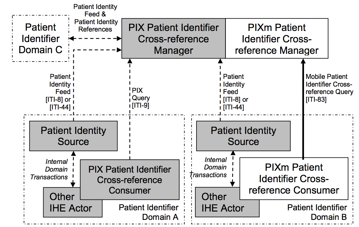 The Patient Identifier Cross-reference for Mobile (PIXm) Profile defines a lightweight RESTful interface to a Patient Identifier Cross-reference Manager, leveraging technologies readily available to mobile applications and lightweight browser based applications.